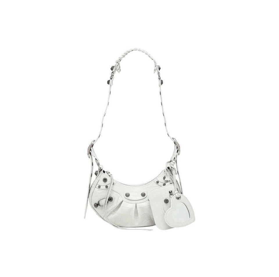 BALENCIAGA Le Cagole XS studded crinkled-leather shoulder bag White